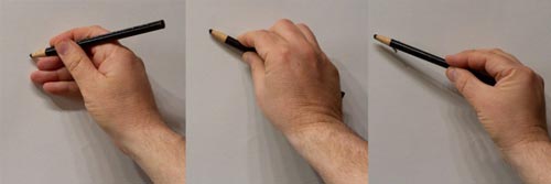 While doing these exercises, challenge yourself by holding the pencil in different ways. Most people when they begin drawing hold the pencil as they do when writing. This is fine, but more experienced artists have found that holding the pencil in different ways can help loosen you up even more and prepare you for painting.