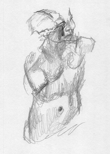 Start by holding your pencil lightly. Look quickly and energetically at the subject's entire form all at once. Draw your impression of the whole form very quickly and loosely. Try to capture the energy and movement of the shape. Time yourself by doing 5-second sketches. Then go to 15 seconds, then 30, then a minute. The results on paper will be scribbles, but the results in your mind will be anything but.